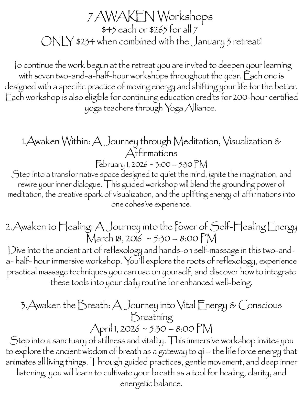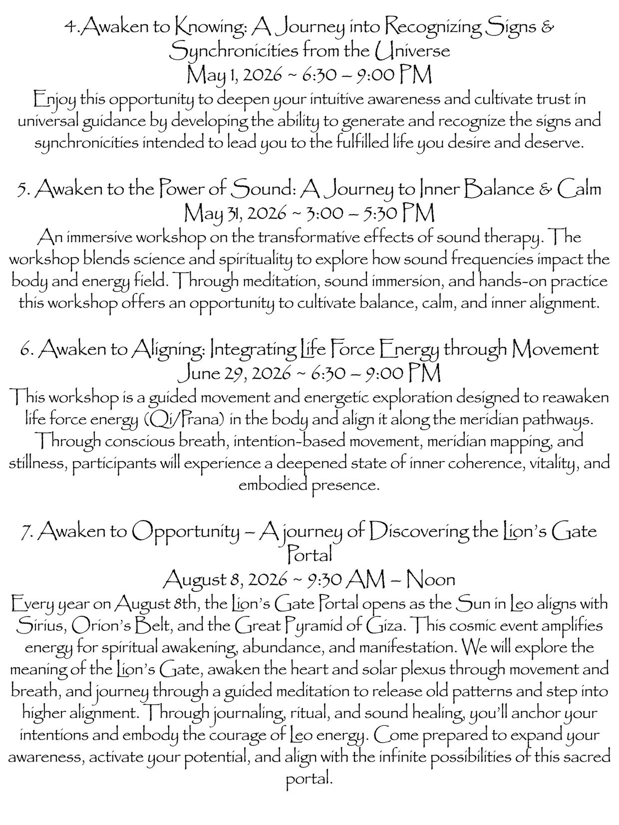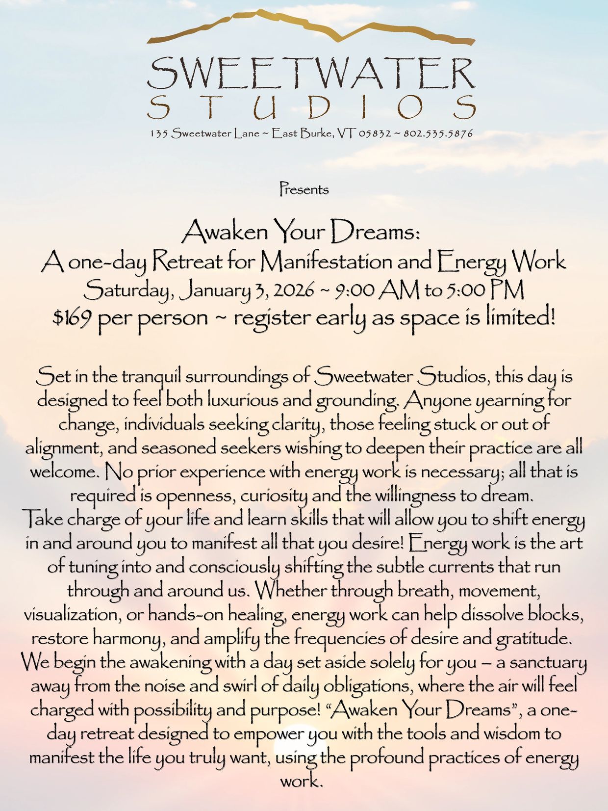 Awaken Your Dreams for the new year and beyond. Watch for more news about the retreat and other exciting workshops related to Manifestation & Energy Work!
